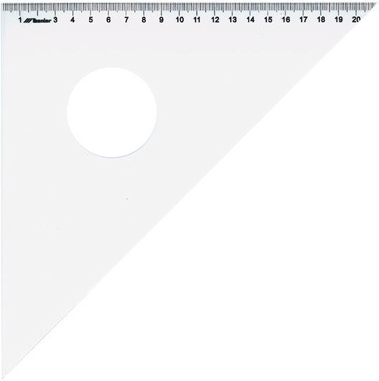 Leniar Ekierka z podcięciem plexi 45/36cm ekierka z przeźroczystej plexi kąty: 45° x 45° x 90° podcięcie krawędzi nadrukowana precyzyjna podziałka 24,5cm długość przeciwprostokątnej: 36cm opakowanie: etui z tworzywa