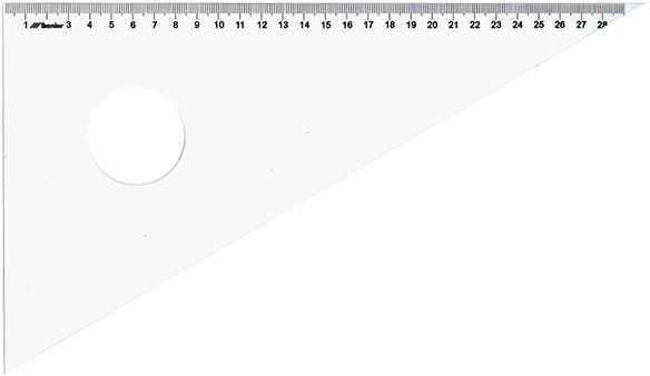 ekierka z przezroczystej plexi kąty: 60° x 30° x 90° podcięcie krawędzi nadrukowana precyzyjna podziałka 30,0cm długość przeciwprostokątnej: 32cm opakowanie: etui z tworzywa