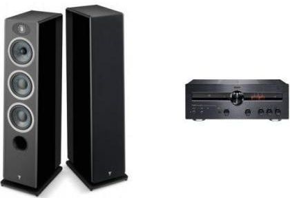 MAGNAT MA900 + FOCAL VESTIA N2 - zestaw stereo: wzmacniacz plus para kolumn głośnikowych Magnat MA 900 - wzmacniacz z bluetooth Połączenie technologii lampowej i tranzystorowej ma w firmie Magnat długą tradycję. W końcu łączy optymalny dźwięk z imponującą wydajnością. MA 900 nie jest inny. Wyróżnia się imponującymi walorami technicznymi, rozbudowaną konfiguracją i optymalnym wykonaniem, a także minimalistycznym designem. Pełna moc - 200 watów x 2 Podczas gdy wybrane wysokiej klasy lampy ECC 81 dbają o wzmocnienie drobnych sygnałów wejściowych i generują niepowtarzalny dźwięk lampowy, tranzystory mocy zapewniają stałą, ciągłą moc wyjściową 200 watów mocy sinusoidalnej na kanał. Wytworzona moc impulsu to imponujące 320 watów. 5 analogowych wejść niskopoziomowych i wejście jack 3,5 mm z przodu urządzenia, a także 4 wejścia cyfrowe i wejście phono dla systemów MM i MC gwarantują łączność nawet z najbardziej rozbudowanymi systemami AV. Tablety, smartfony i komputery można również łączyć przez Bluetooth z optymalną jakością dźwięku dzięki standardowi aptX HD. Moc wyjściowa / nominalna: 20 Hz – 20 kHz, THD Moc szczytowa: 1 kHz, 4 Ω 2 x 320 W Pasmo przenoszenia wejść analogowych: CD/Tuner/Aux/Line/Tape: 6 Hz – 100 kHz (-3,0 dB) Phono: 20 Hz – 20 kHz (+/-0,8 dB) Filtr subsoniczny: 16 Hz, 18 dB / okt. Stosunek sygnału do szumu wejść analogowych: CD/Tuner/Aux/Line/Tape: 105 dB, Phono MM: 85 dB Czułość wejść analogowych: CD/Tuner/Aux/Line/Tape: 470 mV / 100 kOhm, Phono MM: 5 mV / 470 Ohm Cyfrowa sekcja wejśc: 2 x optyczne, 2 x coaxial, Bluetooth 4.0 / Qualcomm aptX Obsługa częstotliwości próbkowanej: 44.1/48/88.2/96/176.4/192kHz Wsparcie dla bitów: 16/24bits Napięcie sieci 230 VAC / 50 Hz Pobór energii Maksymalny 700 W / w trybie czuwania 0,5 W Obsługiwane lampy: 2x ECC 81 / 12AT7 Wymiary (szer. x wys. x głęb.) 433 x 162 x 316 mm Waga 11.7 kg FOCAL VESTIA N°2 - 2 kolumny głośnikowe podłogowe Vestia N°2 to 3-drożna kolumna podłogowa łączący elegancję niedopowiedzianego projektu z finezją nowoczesnego głośnika wysokiej wierności. Łączy technologie Focal, takie jak stożek z recyklingowanego włókna węglowego Slatefiber, wykonany w naszych francuskich warsztatach, z głośnikiem wysokotonowym TAM w kształcie litery 'M' (nigdy wcześniej nie widzianym w głośniku domowym) dla wzmocnienia wysokich tonów. Vestia N°2 jest idealna do pomieszczeń o powierzchni od 215ft2 (20m²), z zalecaną odległością odsłuchu 3m. typ: 3-drożna kolumna podłogowa typu bass-reflex przetworniki: 2x 6½" (16,5cm) głośnik niskotonowy z włókna łupkowego, 6½" (16,5cm) głośnik średniotonowy z włókna łupkowego, 1" (25mm) głośnik wysokotonowy TAM z odwróconą kopułką z Al/Mg czułość (2,83V/1m): 91,5dB pasmo przenoszenia (±3dB): 47Hz - 30kHz punkt niskiej częstotliwości (-6dB): 37Hz impedancja nominalna: 8 Ω impedancja minimalna: 3 Ω zalecana moc wzmacniacza: 40 - 250W częstotliwość zwrotnicy: 280Hz / 2,800Hz wymiary produktu: 256 x 1012 x 371 mm waga netto: 22,00 kg