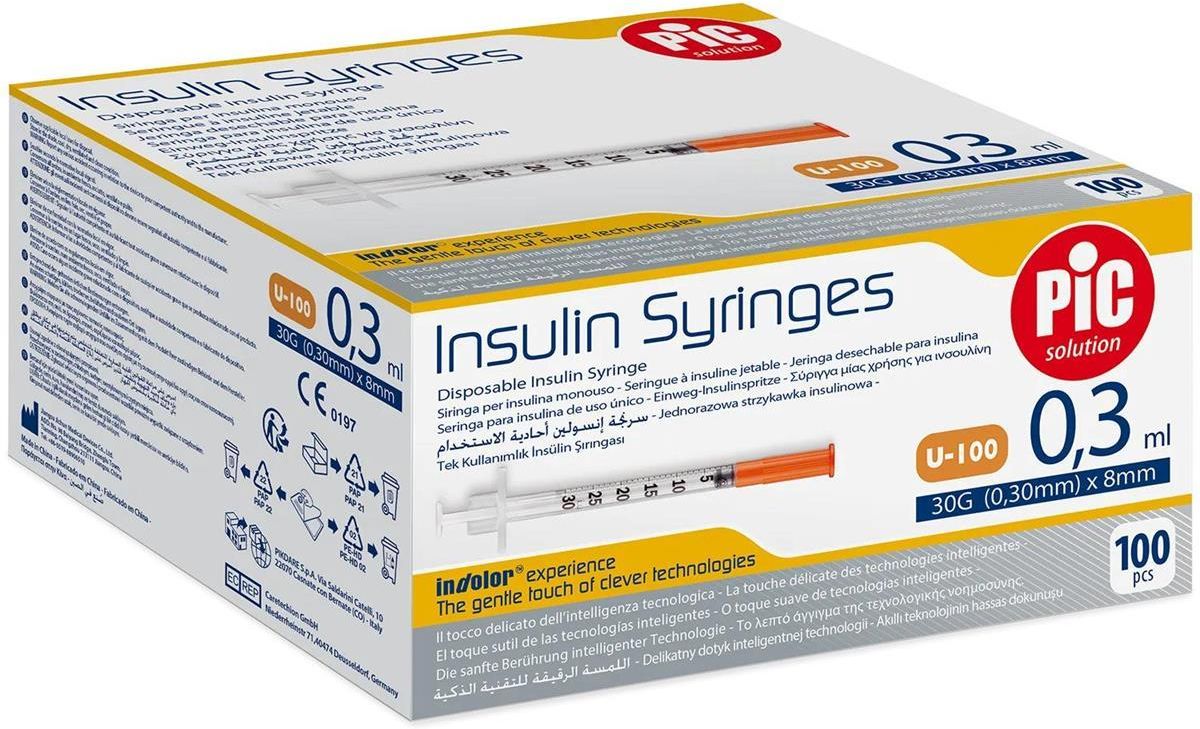 PIC solution Insulin Syringes 31G (0,25mm) x 8mm jednorazowa strzykawka insulinowa, 100 szt. Zelów