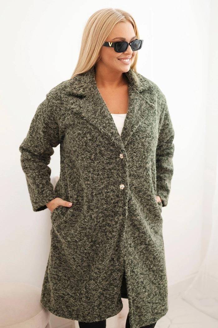Płaszcz damski Plus Size z wełną i dużym kołnierzem khaki Zelów