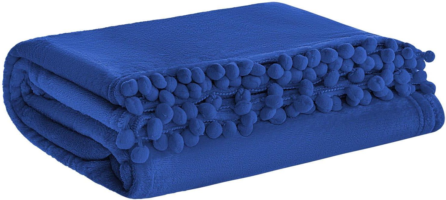 Spod Igły I Nitki Granatowy Koc Z Pomponami 150X200 Pompie 22213 Zelów