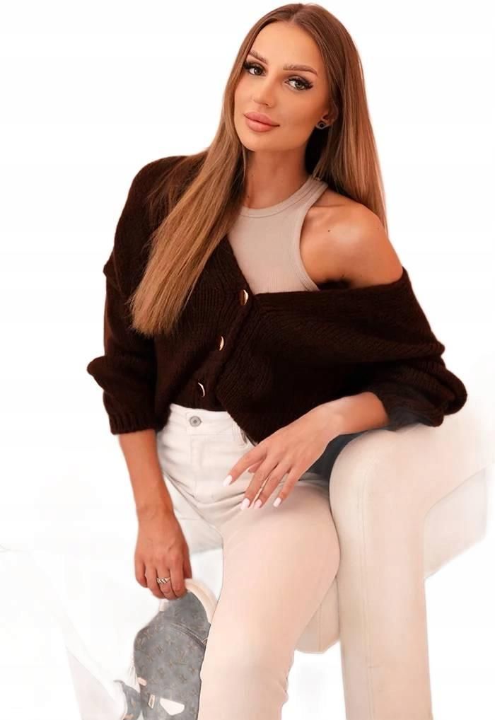 Sweter damski z dekoltem V i guzikami brązowy ART7090 Ten sweter damski z dekoltem w serek to doskonały wybór dla kobiet ceniących wygodę, styl i uniwersalność. Wykonany z miękkiego i przyjemnego w dotyku materiału, świetnie sprawdzi się w chłodniejsze dni - zarówno do codziennych stylizacji, jak i …