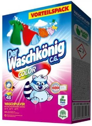 Bardzo skuteczny proszek do prania tkanin kolorowych Der Waschkönig C.G. Color o pojemności 2,88 kg.