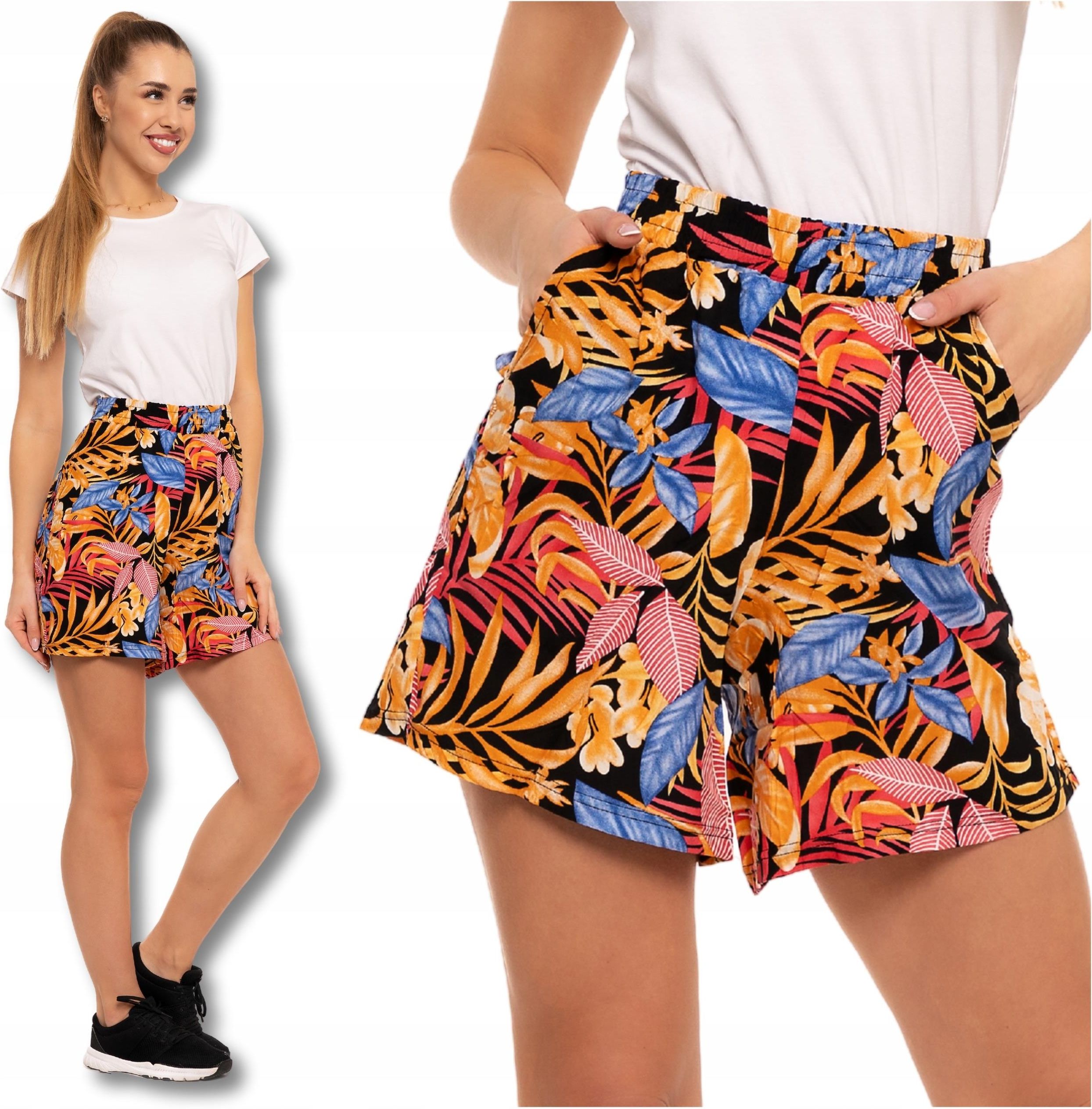 Damskie Szorty Kwiaty Gumka w Pasie Wiskoza Klasyczne Przewiewne MORAJ XL Żerków