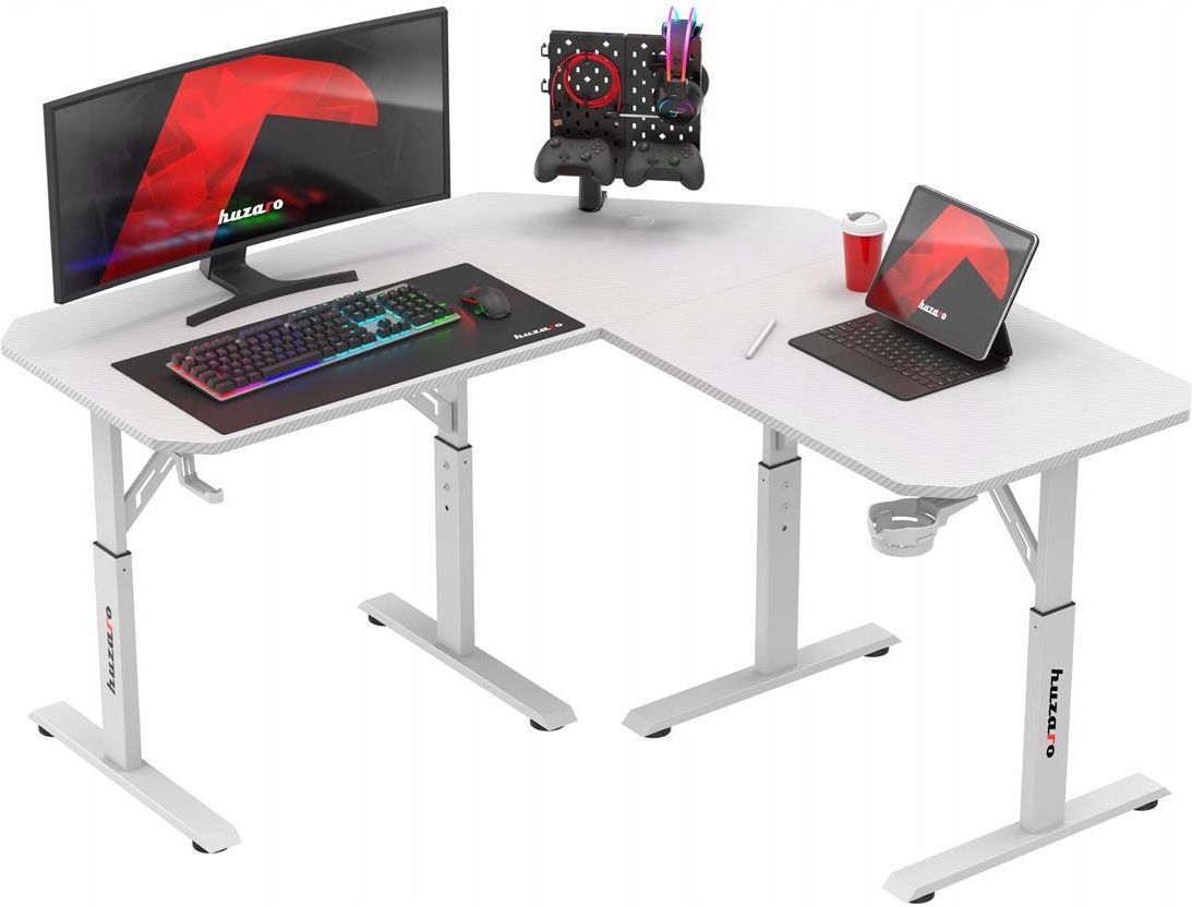 BIURKO GAMINGOWE KOMPUTEROWE NAROŻNE HUZARO Regulowana wysokość blatu !!! MODEL: HERO 7.3 WHITE Cechy szczególne Biurko gamingowe z regulacją wysokości Funkcjonalny design, idealny do ustawienia w narożniku Regulowana wysokość blatu – 56 cm, 75 cm, 79 cm Blat pokryty powłoką carbon – odporność na …
