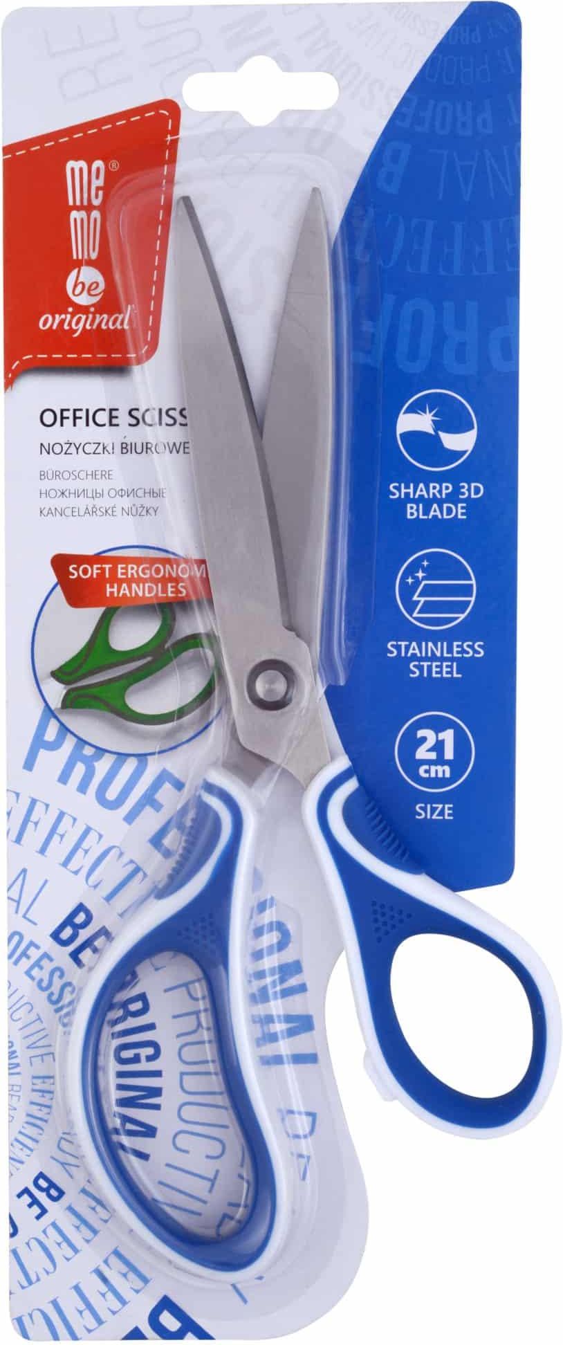 Nożyczki biurowo-szkolne MemoBe wykonane z wygodnego, miękkiego w dotyku tworzywa o długości 21cm. Posiadają specjalnie ostrze 3D ze stali nierdzewnej, które dzięki swojej konstrukcji i nachyleniu pod najbardziej optymalnym kątem, gwarantuje bardziej precyzyjne cięcie. Profilowana struktura stali zmniejsza tarcie między ostrzami, dzięki czemu nożyczki tną papier z większą łatwością.