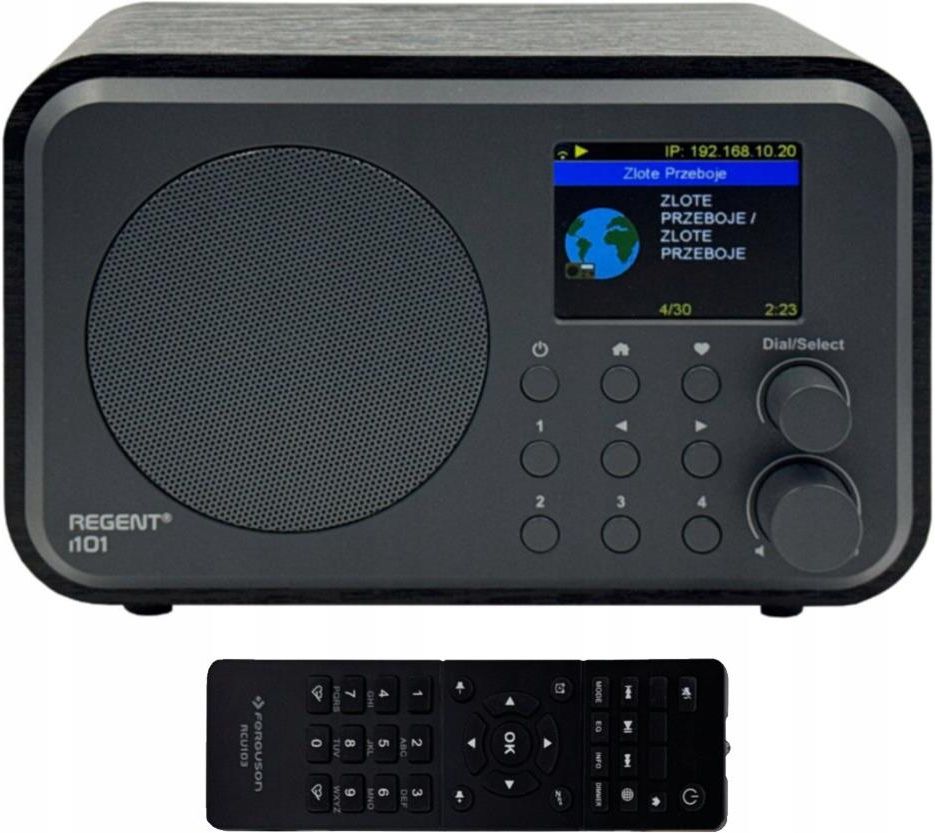 Radio internetowe, FM, DAB +Ferguson Regent i101 kolor czarny/ antracyt Ferguson Regent i101 — nowoczesne radio hybrydowe 5-w-1 z Wi-Fi, DAB+, FM, Bluetooth 5.3 Ferguson Regent i101 łączy internetowe radio, cyfrowe DAB+/DAB, analogowe FM oraz Bluetooth w jednej obudowie. To oznacza dostęp do nieograniczonej liczby źródeł dźwięku – lokalnych stacji, globalnych streamów i podcastów w jednym miejscu. Ferguson Regent i101 – jedno radio, muzyka bez ograniczeń, także bez gniazdka Zapomnij o byciu „przywiązanym do kabla”. Regent i101 to nowoczesne radio internetowe, które łączy klasyczne stacje radiowe, cyfrowy DAB+, radio internetowe i Bluetooth, a dzięki wbudowanemu akumulatorowi możesz zabrać je dokładnie tam, gdzie chcesz. W domu, w kuchni, na balkonie, w ogrodzie czy na wyjeździe – po prostu włączasz i słuchasz. Najważniejsze funkcje: ✅ Radio internetowe – tysiące stacji i podcastów online z całego świata ✅ DAB/DAB+ – cyfrowe radio z czystym dźwiękiem i stabilnym odbiorem ✅ Radio FM – klasyczne stacje z funkcją RDS (nazwa stacji, utworu, audycji) ✅ Odtwarzacz sieciowy (UPnP/DLNA) – Słuchaj swojej prywatnej kolekcji muzycznej zgromadzonej na komputerze lub dysku sieciowym NAS. ✅ Bluetooth – bezprzewodowe odtwarzanie muzyki ze smartfona lub tabletu ✅ Wi-Fi – stały dostęp do radia internetowego i usług online ✅ Line-out 2x– wyjście słuchawkowe/line-out (3,5 mm) ✅ Kolorowy wyświetlacz – czytelne menu i informacje o stacji oraz utworach Do 8–10 godzin odtwarzania na jednym ładowaniu. ZALETY: Niezwykła wszechstronność dzięki akumulatorowi (2000 mAh) jest gotowy do pracy w każdym miejscu, bez kabla. Ta mobilność przewyższa typowe modele wymagające zasilania sieciowego. Dodatkowo urządzenie wspiera ładowanie USB, więc wygodnie doładujesz je powerbankiem w podróży. Mobilność i autonomia Zastosowanie Bluetooth 5.3 to duży krok naprzód w porównaniu do starszych odbiorników (wiele konkurencyjnych modeli ma Bluetooth 4.x lub 5.2). Najnowszy standard gwarantuje lepszą stabilność połączenia i mniejsze zakłócenia przy przesyłaniu audio. Do tego Ferguson Regent i101 obsługuje dwuzakresowe Wi-Fi (2,4 GHz i 5 GHz), co zapewnia szybkie i stabilne łączenie – unikając przeciążonych kanałów sieciowych. Najnowsze technologie bezprzewodowe i101 oferuje pełnokolorowy, 2,4-calowy ekran. Pozwala to wygodnie przeglądać listy stacji i sprawdzać informacje o utworach. W połączeniu z elegancką, drewnianą obudową dodaje urządzeniu prestiżu. Wiele konkurencyjnych modeli w tej klasie jest plastikowych i nie ma tak czytelnego interfejsu graficznego. Wyraźny, kolorowy ekran TFT Dzięki czterem przyciskom szybkiego dostępu Ferguson Regent i101 umożliwia natychmiastowe wybieranie zaprogramowanych stacji. Konkurencyjne odbiorniki często mają pamięć na kilkadziesiąt stacji (np. 50–60 stacji FM), ale zazwyczaj wymagają żmudnego przewijania listy. Ferguson Regent i101 pozwala jednym przyciskiem przywołać ulubioną stację internetową, FM lub DAB+. Dodatkowo sterowanie pilotem sprawia, że zasięganie do ustawień i przeglądanie menu jest szybkie i wygodne – co w typowych radioodbiornikach bezprzewodowych jest rzadkością. Innowacyjne funkcje czasowe- Dzięki czterem przyciskom szybkiego dostępu Ferguson Regent i101 umożliwia natychmiastowe wybieranie zaprogramowanych stacji. Konkurencyjne odbiorniki często mają pamięć na kilkadziesiąt stacji (np. 50–60 stacji FM), ale zazwyczaj wymagają żmudnego przewijania listy. Ferguson Regent i101 pozwala jednym przyciskiem przywołać ulubioną stację internetową, FM lub DAB+. Dodatkowo sterowanie pilotem sprawia, że zasięganie do ustawień i przeglądanie menu jest szybkie i wygodne – co w typowych radioodbiornikach bezprzewodowych jest rzadkością. Elegancki design i solidna konstrukcja Kombinacja drewnianego panelu z tyłu i mocnego plastiku na krawędziach nadaje Ferguson Regent i101 unikatowego charakteru. Konkurencyjne radia przenośne są zazwyczaj czarne i plastikowe – Ferguson Regent i101 wygląda nowocześnie i pasuje do każdego wnętrza. Przy tym mierzy tylko ok. 18,6 × 12,0 × 11,5 cm, waży niewiele i łatwo mieści się w plecaku lub na półce. wybierz kolor, który lubisz Najważniejsze cechy Rozbudowana łączność WiFi 802.11 b/g/n (2,4 GHz) z obsługą WPS oraz Bluetooth 5.3 Uniwersalny tuner Internetowe radio z biblioteką SkyTune (ponad 30 000 stacji z całego świata). Podcasty z funkcją subskrypcji, zapis „Listen Again” i przewijaniem w odcinkach. DAB+/DAB (174–239 MHz) i FM (87,5–108 MHz) z automatycznym skanowaniem i manualnym strojem. Multimedialne centrum Strumieniowanie UPnP/DLNA z domowych serwerów NAS lub komputerów. Pełna personalizacja 150 miejsc na ulubione stacje i cztery dedykowane przyciski „1–4”. Możliwość tworzenia folderów i zarządzania nimi z pilota lub przeglądarki. Komfort obsługi Kolorowy wyświetlacz TFT 2,4″ i duży zegar w trybie czuwania. Regulacja jasności z trybem power-saving i całkowitym wyłączeniem podświetlenia. Wygodne pokrętło Dial/Select, klawisze kursora oraz podręczny pilot z klawiaturą alfanumeryczną. Akumulator litowo-jonowy 2000 mAh Do 8–10 godzin odtwarzania na jednym ładowaniu. Kompaktowa obudowa 185 × 100 × 114 mm, masa 750 g, gniazda słuchawkowe i liniowe 3,5 mm. Specyfikacja techniczna Łączność i sieć WiFi: 802.11 b/g/n Częstotliwość WiFi: 2.4 GHz Protokół zabezpieczeń: WEP / WPA / WPA2 Konfiguracja sieci: Wprowadzenie hasła lub przycisk WPS Ustawienia IP: Dynamiczne / Statyczne IP Radio internetowe *Katalog stacji: Skytune: ponad 30 000 stacji radiowych z całego świata * Podcasty: Przeglądanie i wyszukiwanie: Szybkie przeglądanie dużej liczby odcinków podcastu Wyszukiwanie po słowach kluczowych Subskrypcja: Automatyczne aktualizacje ulubionych podcastów Przewijanie: Przód / tył na pasku po