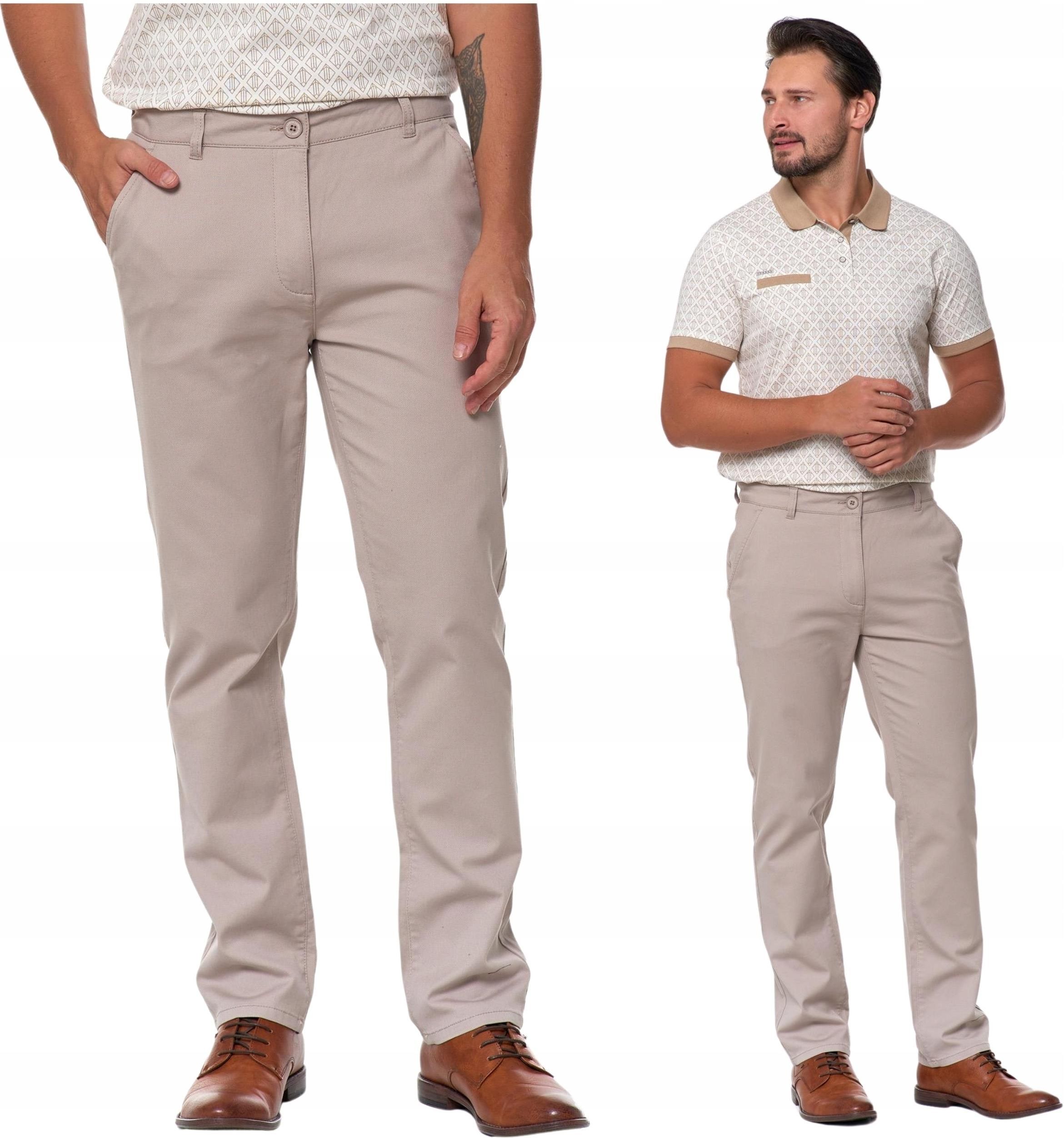 SPODNIE MĘSKIE Eleganckie Beżowe Chinosy Nogawka Prosta Modne MORAJ r.30 Żerków