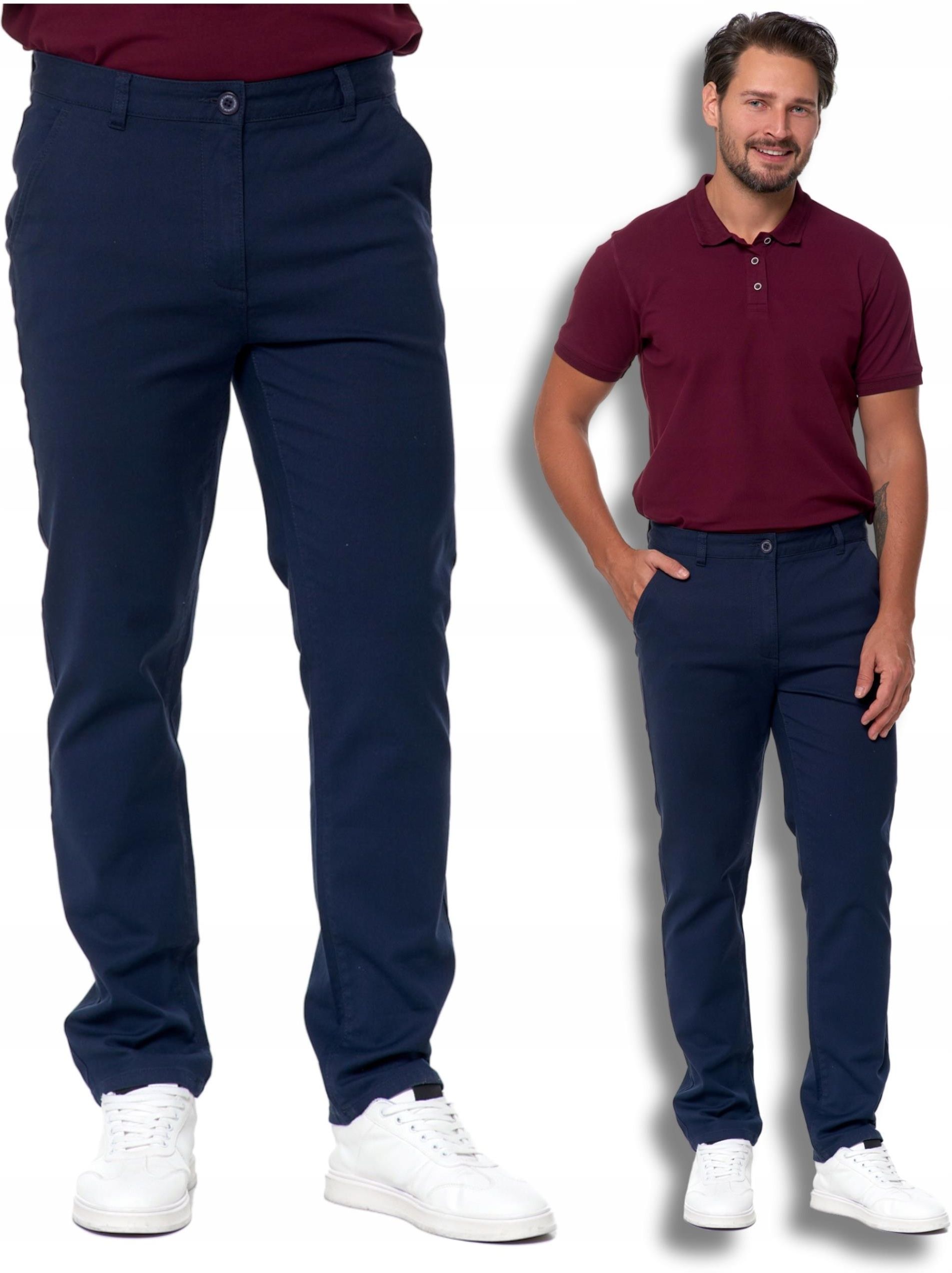 SPODNIE MĘSKIE Eleganckie Granatowe Chinosy Nogawka Prosta Modne MORAJ r.34 Żerków