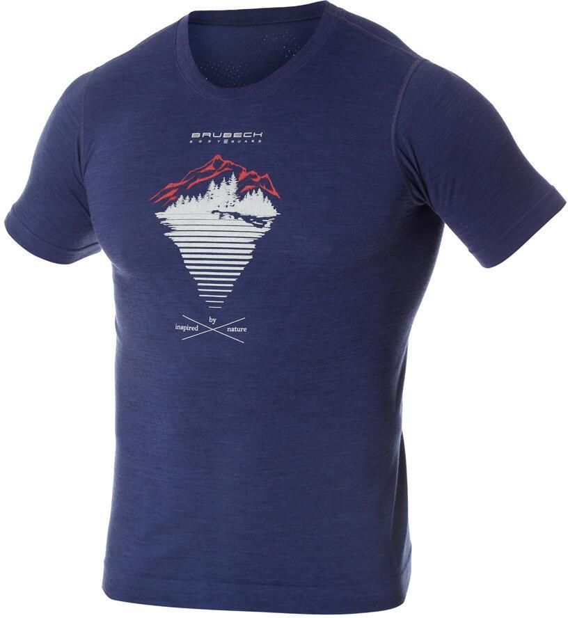 Brubeck Koszulka Turystyczna Z Merino Męska Ciemnoniebieski Góra Linii Niebieski Zgierz