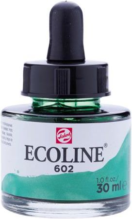 Talens Ecoline skoncentrowana farba akwarelowa w stanie płynnym pojemność: 30 ml kolor: 602 Deep Green odznacza się wspaniałą przyswajalnością do papieru akwarelowego, rysunkowego lub tektury Ecoline to wszechstronność w użyciu w połączeniu z różnego rodzaju materiałami; doskonale nadaje się do prac projektowych, do lawowania prace powinny być przechowywane z dala od światła aby zapobiec utracie kolorów doskonale sprawdza się w malarstwie akwarelowym, ale także w rysunku architektonicznym, i wszelkich technikach hobby znakomicie nadaje się do znakowania i pieczętowania produkowane 46 transparentnych kolorów oraz 2 kryjące (złoty i biały) opakowanie: kwadratowa zakręcana butelka produkt holenderskiej firmy Talens