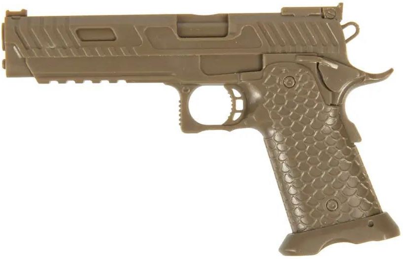 Trójwymiarowa naszywka przedstawiająca pistolet Colt 1911, została wykonana z elastycznego tworzywa sztucznego. Emblemat mocowany jest za pomocą rzepu np. do umundurowania lub oporządzenia taktycznego.
