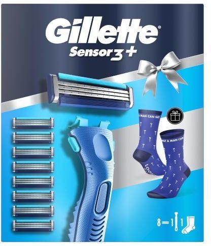 Gillette Sensor 3+ Comfort Zestaw Maszynka do golenia dla mężczyzn + Wymienne ostrza, 8 szt. + Skarpety Zgierz