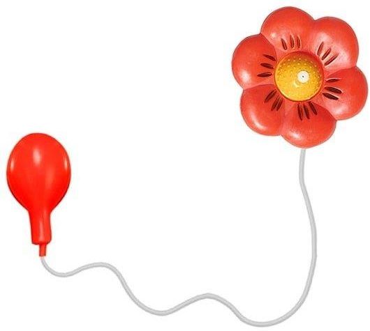 KWIATEK PSIKAWKA KLAUNA POMARAŃCZOWA Kwiatek wykonany solidnego tworzywa w kolorze pomarańczowym. Pod płatkami przymocowany jest wężyk zakończony bańką w kolorze czerwonym. Napełnianie wodą odbywa się poprzez wyjęcie końcówki wężyka z psikawki. Kwiatek można zaczepić do ubrania agrafką, która jest …