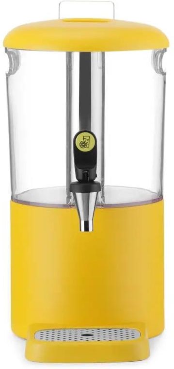 Dyspenser do soków, 4 l UNIQ, designed by Robert Bronwasser, żółty, 315x211x(H)431mm HENDI 425022 Dyspenser do soków UNIQ to nowoczesny dozownik napojów o pojemności 4 litrów, zaprojektowany przez znanego projektanta Roberta Bronwassera. Charakteryzuje się wyrazistym żółtym kolorem oraz wyjątkowym designem, który doskonale sprawdzi się w kawiarniach, hotelach, salach konferencyjnych czy podczas śniadań w restauracjach. Produkt ten zapewnia wygodne serwowanie soków oraz innych zimnych napojów w miejscach o dużym natężeniu ruchu. Cechy charakterystyczne dyspensera UNIQ Nowoczesny design: Dyspenser został stworzony przez Roberta Bronwassera, co gwarantuje nie tylko funkcjonalność, ale także estetykę, która podkreśli wystrój każdego wnętrza gastronomicznego. Przeznaczenie do kontaktu z żywnością: Materiały wykorzystane do produkcji – ABS, stal nierdzewna oraz polipropylen – zapewniają bezpieczeństwo użytkowania oraz łatwość utrzymania czystości, co jest kluczowe w profesjonalnych kuchniach i bufetach. Brak konieczności podłączenia do prądu i wody: Dyspenser nie wymaga instalacji elektrycznej ani wodnej, dzięki czemu można go ustawić w dowolnym miejscu wewnątrz pomieszczeń. Specyfikacja techniczna dyspensera do soków żółty, 4 l Pojemność: 4 litry – umożliwia serwowanie większej ilości napojów bez konieczności częstego uzupełniania. Wymiary: 31,5 x 21,1 x 43,1 cm – kompaktowa konstrukcja pozwala na łatwe ustawienie na bufecie lub stole konferencyjnym. Długość przewodu: 1500 mm – zapewnia wygodę użytkowania w różnych miejscach, jeśli potrzebne jest podłączenie dodatkowych akcesoriów. Kolor: żółty – przyciąga wzrok i ożywia przestrzeń, doskonale komponując się z nowoczesnymi wnętrzami. Materiał: ABS, stal nierdzewna, PP – gwarantuje trwałość, odporność na uszkodzenia i łatwość czyszczenia. Ilość w opakowaniu: 1 sztuka – idealny wybór do indywidualnego zastosowania lub jako uzupełnienie większego zestawu dyspenserów. Waga netto: 2,4 kg – lekka konstrukcja ułatwia przenoszenie i codzienną obsługę. Zastosowanie i budowa dyspensera do napojów Dyspenser UNIQ doskonale sprawdzi się podczas serwowania soków, lemoniad czy wody w hotelowych restauracjach, salach śniadaniowych, biurowych kuchniach czy na eventach cateringowych. Prosta obsługa pozwala na szybkie napełnianie i podawanie napojów. Solidna konstrukcja z wysokiej jakości materiałów gwarantuje długą żywotność i bezpieczeństwo użytkowania nawet przy intensywnej eksploatacji. Dozownik wyposażony jest w wygodny kranik, który umożliwia precyzyjne nalewanie napoju do szklanek lub kubków, minimalizując ryzyko rozlania. Dlaczego warto wybrać dyspenser do soków UNIQ? Wybierając dyspenser do soków UNIQ, inwestujesz w profesjonalny produkt, który łączy nowoczesny wygląd z praktycznymi rozwiązaniami. Jego pojemność i wytrzymałość sprawiają, że sprawdzi się zarówno w małych, jak i dużych lokalach gastronomicznych. Żółty kolor ożywia wnętrze i przyciąga uwagę gości, a łatwość obsługi oraz czyszczenia przekłada się na wygodę codziennego użytkowania. To doskonały wybór dla osób poszukujących niezawodnego i estetycznego rozwiązania do serwowania napojów.