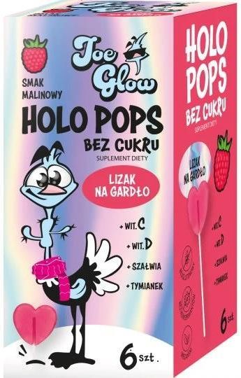 Joe Glow Holo Pops Zestaw Lizaków Na Gardło Smak Malinowy Bez Cukru Glutenu 6Szt. X 6g Zgierz