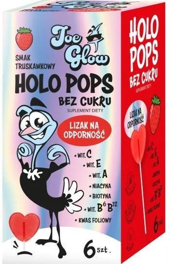 Joe Glow Holo Pops Zestaw Lizaków Odporność Smak Truskawkowy Bez Cukru Glutenu 6Szt. X 6g Zgierz