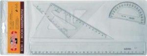 Zestaw kreślarski mały zawiera: - linijkę 20 cm, - kątomierz 180o - ekierkę 13 cm - ekierkę równoramienną 9 cm . Wykonany z przezroczystego tworzywa sztucznego, skale naniesione w procesie tłoczenia oraz linijka i ekierki posiadają podcięcia do rysunku tuszem. EAN: 8593540111920 Wydawnictwo: Koh-I-Noor Rok wydania: 2016 Oprawa: 23x9 cm
