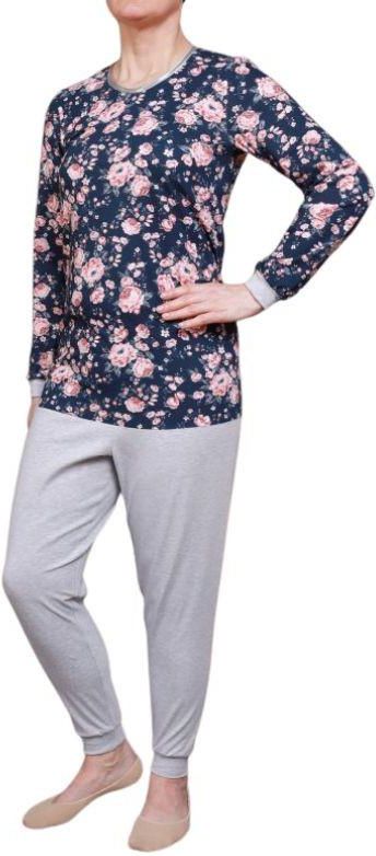 Kombinezon, piżama jednoczęściowa z zamkiem na plecach dla seniora rozmiar M długie rękawy, długie nogawki - polecamy na okres zimowy Kwiaty granat Zgierz
