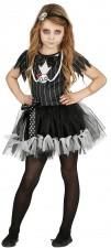 Poszukujesz przebrania na Halloween dla swojej córki?Zasugeruj się ulubioną postacią z bajki bądź filmu. Jeżeli dziewczynka uwielbia Monster High to nie zastanawiaj się tylko zakup oferowany strój. Strój Upiornej Panienki zawiera: sukienkę opaskę na głowę Materiał: tkanina poliestrowa, tiul. Sukienka wykonana w czarnej kolorystyce, zapinana z tyłu na rzep. Dół sukienki wykonany z dwóch warstw: wierzchnia tiulowa, spodnia z tkaniny poliestrowej.Walorem przebrania są ozdoby z zabawną czaszką. Uwaga! Sukienka zawiera wyłącznie czarny tiul (nie zawiera szarego wykończenia). Przemień swoją pociechę w upiorną dziewczynkę. opis/rozmiar 3-4 lata 5-6 lat 7-9 lat 10-12 lat długość całkowita 50 cm 53 cm 62 cm 65 cm obwód w klatce piersiowej 58 cm 62 cm 72 cm 80 cm