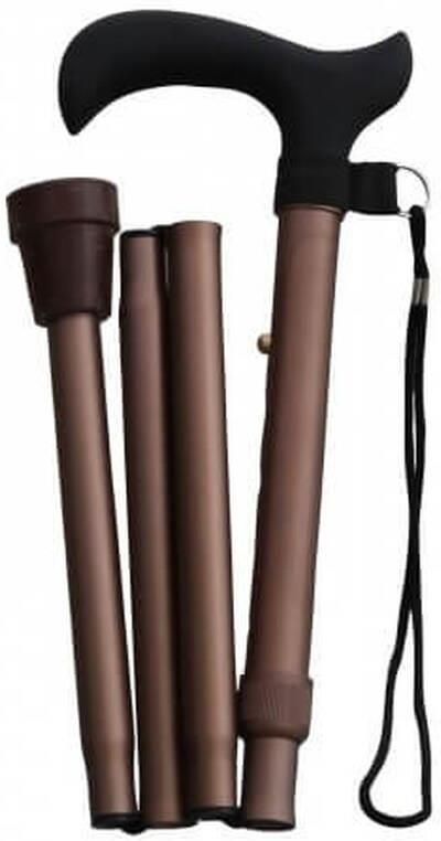 Elegancka i praktyczna laska inwalidzka składana. Dedykowana jest wszystkim osobom o obniżonej sprawności ruchowej, wymagających podparcia przy poruszaniu się. Wykonana jest z najwyższej jakości komponentów dających gwarancję jej trwałości i wytrzymałości podczas użytkowania. Ta laska inwalidzka składana z uchwytem Derby brązowa wyposażona jest dodatkowo w pasek zapewniający doskonałą wygodę i komfort użytkowania. Dzięki temu gadżetowi laska inwalidzka składana stabilnie trzyma się w dłoni i z pewnością nie wyślizgnie się z niej. Idealnie zaprojektowany, ergonomiczny kształt uchwytu sprawia, że doskonale dopasowuje się do kształtu dłoni i nie wyślizguje się, dając solidne podparcie. Dodatkowo jest składana, zatem z powodzeniem zmieści się w każdej torebce, nie zajmując w niej wiele miejsca. Laska inwalidzka składana posiada regulację wysokości – od 83 do 93 cm, więc można ją idealnie dopasować do upodobań właściciela.Maksymalny udźwig 100 kg. Elegancki design sprawia, że może być doskonałym uzupełnieniem każdej stylizacji i modnym dodatkiem do niej. Laska inwalidzka składana z uchwytem Derby i paskiem wykonana jest w kolorze ciepłego brązu, co z pewnością doceni każdy modny senior. Bardzo poręczny gadżet.