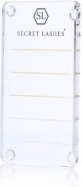 podstawka do przyklejania pasków z rzęsami dzięki odpowiedniemu cięzarowi nie przesuwa się podczas zabiegu wykonane z plexi Wymiary: 60x110x8 (mm) 5 linii sygnowana logo Secret Lashes