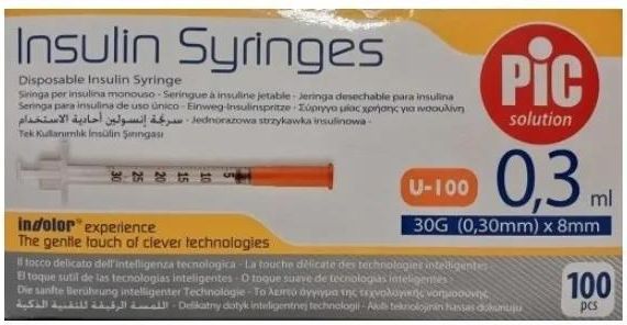 Sirowa Pic Insulin Syringes Strzykawka Insulinowa 0,5ml Jednorazowa G30 0,3x8mm 100szt. Zgierz