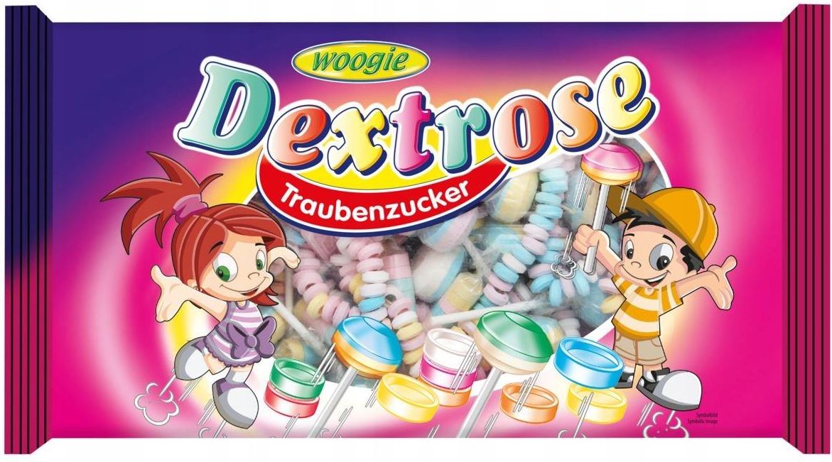 Mieszanka cukierków pudrowych: roladki, naszyjniki, zegary, lizaki - świetna zabawa dla dzieci z Woogie Masa netto: 400 g Składniki: dekstroza 93%, syrop glukozowy, kwas: E330; Środek rozdzielający: E470b, E471; Maltodekstryna, Naturalne Aromaty, Olej Kokosowy, Koncentrat Z Buraków, Ekstrakt z Papryki, Barwniki: E160a, E163. wartości odżywcze 100 gramów energia 1555kJ energia 366 kalorii Tłuszcz 1,60g w tym: kwasy tłuszczowe nasycone 1,50g węglowodany 88g z których cukrów 86g białko 0g Sól (=Sód x 2,5) 0g