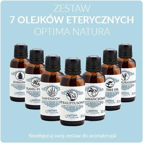 OPTIMA NATURA Olejek eukaliptusowy, 30ml OPTIMA NATURA Olejek lawendowy, 30ml OPTIMA NATURA Olejek pomarańczowy, 30ml OPTIMA NATURA Olejek Ylang-Ylang, 30ml OPTIMA NATURA Olejek herbaciany, 30ml OPTIMA NATURA Olejek sosnowy, 30ml OPTIMA NATURA Olejek Lemongrassowy, 30ml
