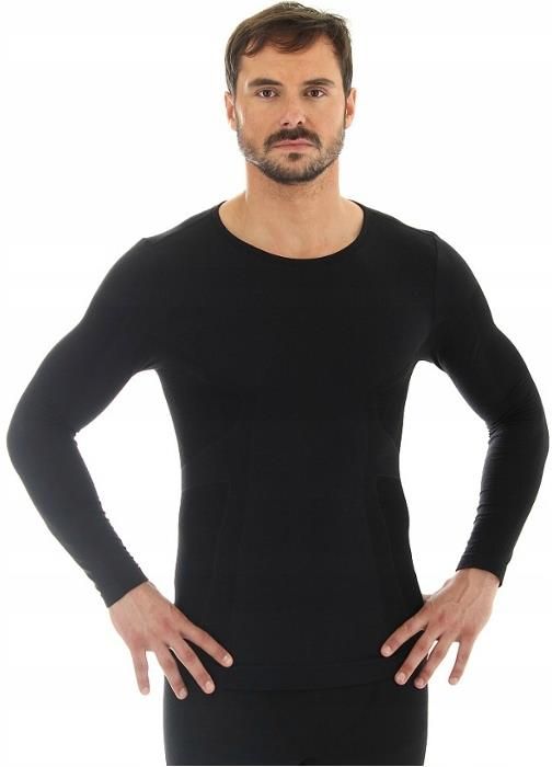 Bluza termoaktywna męska Brubeck Comfort Wool czarna LS11600 Właściwości Bluza termoaktywna Brubeck spełni oczekiwania wszystkich mężczyzn, którym zależy na zachowaniu komfortu termicznego w czasie treningu w plenerze. Dwuwarstwowa, bezszwowa konstrukcja. Zewnętrzna warstwa w całości wykonana z wełny owiec merynos. Połączenie syntetycznych i naturalnych tkanin pozwala utrzymać stałą temperaturę ciała. Produkt został przebadany dermatologicznie – nie podrażnia i nie powoduje uczuleń. Materiał 57% poliamid, 41% wełna merino, 2% elastan