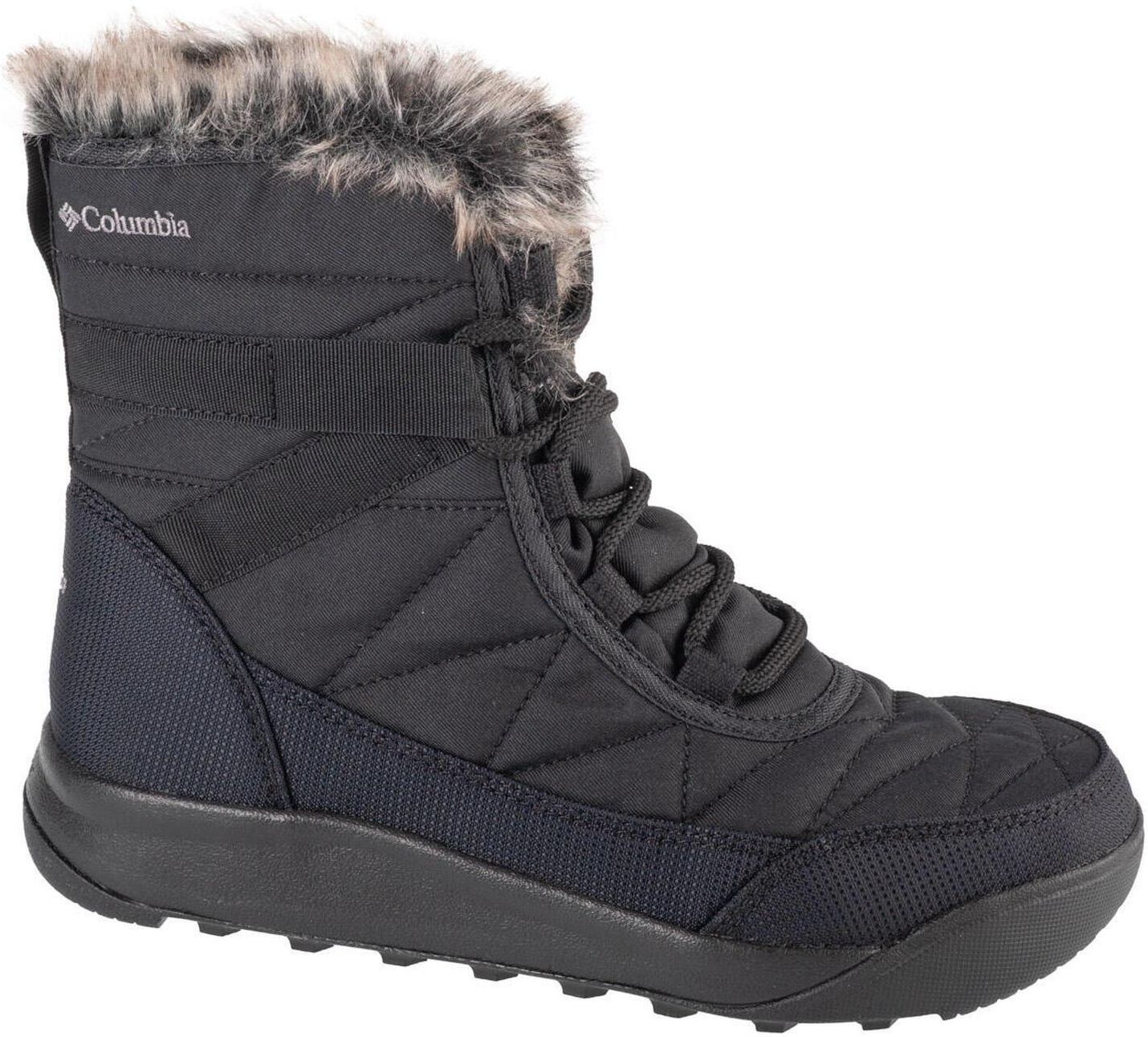 Buty Columbia Minx Shorty IV W 2079181010 Właściwości buty marki Columbia doskonałe na chłodne dni dla kobiet buty zapinane na sznurowadła cholewka wykonana z materiału wysokość za kostkę gruby bieżnik uniwersalna kolorystyka technologa: Adapt Trax, Omni-Heat logo producenta Kolor czarny