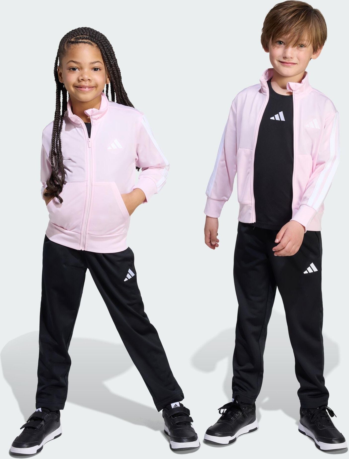 Dres dla dzieci adidas można nosić razem lub osobno, a stworzono go z myślą o zachowaniu długotrwałego komfortu w czasie sportowych aktywności czy codziennego użytkowania. Rozpinana bluza posiada standardowy fason ze stawianym kołnierzem. Jej dolną część i rękawy wyposażono w ściągacze dbające o lepsze dopasowanie do ciała. Spodnie z elastyczną talią regulowaną sznurkiem nie opinają sylwetki i nie krępują ruchów pozwalając zachować pełną mobilność. Zarówno bluza, jak i spodnie zyskały kieszenie umożliwiające przechowywanie ulubionych drobiazgów. Technologia Climacool pomaga odprowadzać pot z powierzchni skóry dzięki materiałom, które go kontrolują i szybko odprowadzają. Szybkoschnące włókna zapewniają poczucie świeżości. Trykot z poliestrowych włókien pochodzi z recyklingu, dlatego kupując komplet sportowy adidas pomagasz zmniejszyć emisję szkodliwych dla środowiska substancji i zaoszczędzić zasoby naturalne. Bardzo czasochłonne jest szukanie bluzy i spodni dla dzieci, więc zaoszczędź cenne chwile kupując dres adidas. Materiał: 100% poliester z recyklingu