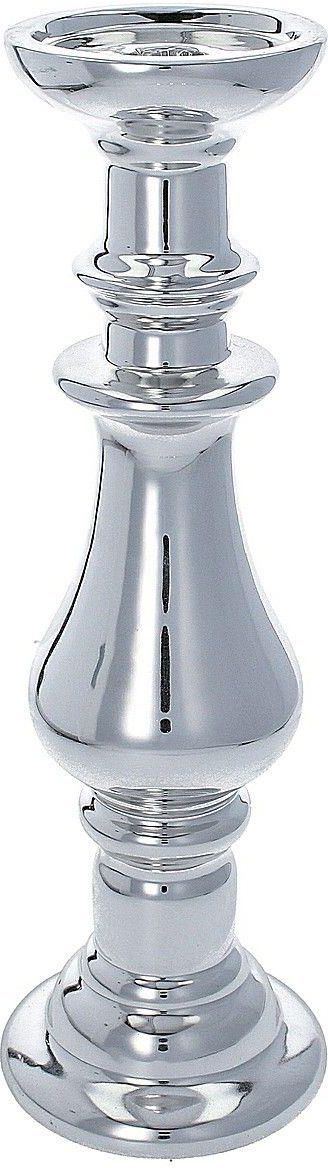 Świecznik Crystal, 13 x 42 cm Kod produktu: 813-337 Elegancki świecznik wykonany z niklowanego aluminium w srebrnym kolorze.Przeznaczony na grubą lub cienką świecę. Poprzez ozdobną formę i połyskującą powierzchnię, wniesie do wnętrza szyk i elegancję. Pięknie zaprezentuje się we wnętrzach w stylu glamour oraz klasycznych. Dane produktu Waga: 0.95kg Rozmiar: 13 x 42 cm Kolor: srebrny Materiał: aluminium