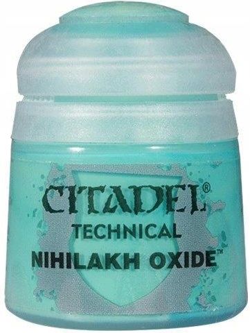 Farba z serii Citadel Technical. Farby z tej serii to specjalny wybór pigmentów z różnymi domieszkami, które tworzone są z myślą o kreowaniu specjalnych efektów na modelach. Część farb z tej serii wymaga odpowiedniej procedury nakładania. Nihilakh Oxide jest farbką typu Wash, nieprzeźroczystą. Po pomalowaniu wcięcia, krawędzie i zagłębienia w metalu uzyskują efekt utlenienia metalu, czyli sporej starości (patyna). Wszystkie farby Citadel są nietoksyczne, akrylowe, na bazie wody. Przeznaczone są do stosowania na plastikowych, metalowych i żywicznych modelach Citadel. Przed nałożeniem pierwszej warstwy polecane jest zastosowanie podkładu. Farbki z tej serii przystosowane są do nakładania pędzlem. Charakterystyka produktu: Typ farby: akrylowa, na bazie wody Pojemność: 12 ml Możliwe do zastosowania rozcieńczalniki: aby uzyskać efekt przygotowany przez producenta nie należy rozcieńczać farby! Producent: Games Workshop Kod producenta: 27-06
