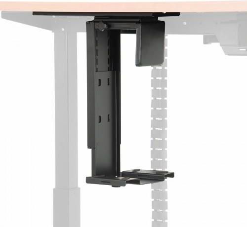 UCHWYT NA KOMPUTER MONTOWANY DO BLATU ST-ZA-01 kolor czarny PODSTAWOWE CECHY montowany bezpośrednio do blatu pasujący do większości jednostek centralnych obrotowy i przesuwny regulacja szerokości i wysokości wykonanie: metal WYMIARY