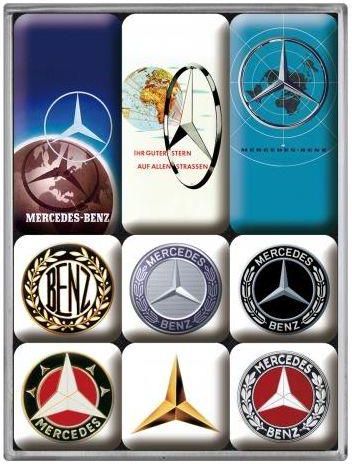 Magnes na lodówkę 6x8cm, zestaw 9 sztuk "Mercedes-Benz - Log" 9-częściowy zestaw magnesów w atrakcyjnym pudełku. Wysokiej jakości magnesy, bardzo mocne. Projekty graficzne wykonane z dużą dokładnością i pokryte żywicą epoksydową. Wymiary: 7x9,3x2cm. Na produktach pojawiają się różne motywy tematyczne, każdy z nich ma inne znaczenie lub jest historią znanej światowej marki. Znajdź swój ulubiony motyw w naszych produktach i zgromadź cała kolekcję. Pamiętaj również o swoich znajomych, nasze produkty zawsze mogą być udanym prezentem dla kogoś bliskiego. Gwarantujemy Państwu Wysoką Jakość Produktów, Nostalgic-Art to światowy producent licencjonowanych dekoracji i gadżetów. Każdy produkt musi spełniać rygorystyczne wymogi jakie stawiają przed nami właściciele marek. Musimy spełniać standardy takich firma jak BMW, Mercedes, John Deere, Coca-Cola, Kawasaki oraz wielu innych których logo oraz historię wykorzystujemy w naszej kolekcji.