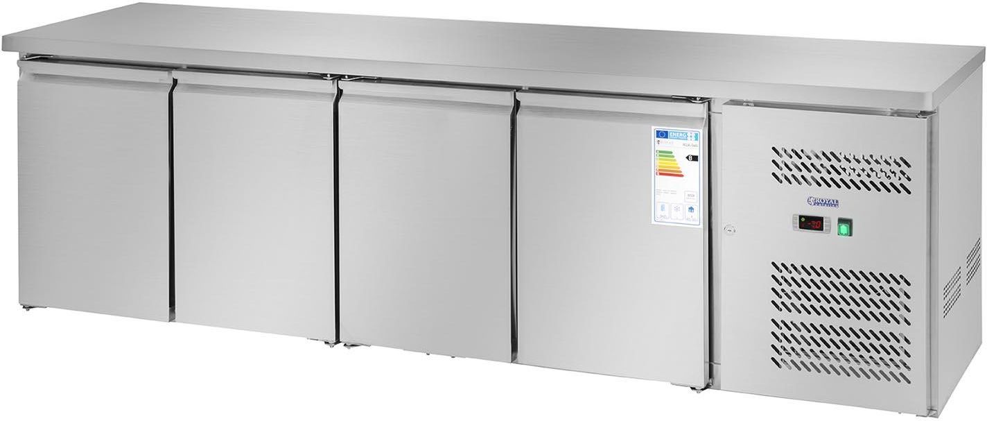 Stół chłodniczy 4-drzwiowy z blatem roboczym ze stali nierdzewnej od -2 do Royal Catering Numer producenta: 10010459 Stół chłodniczy 4-drzwiowy o pojemności 450 l umożliwia schłodzenie wielu produktów spożywczych jednocześnie. Urządzenie jest wyposażone w pojemną komorę magazynową z czterema …