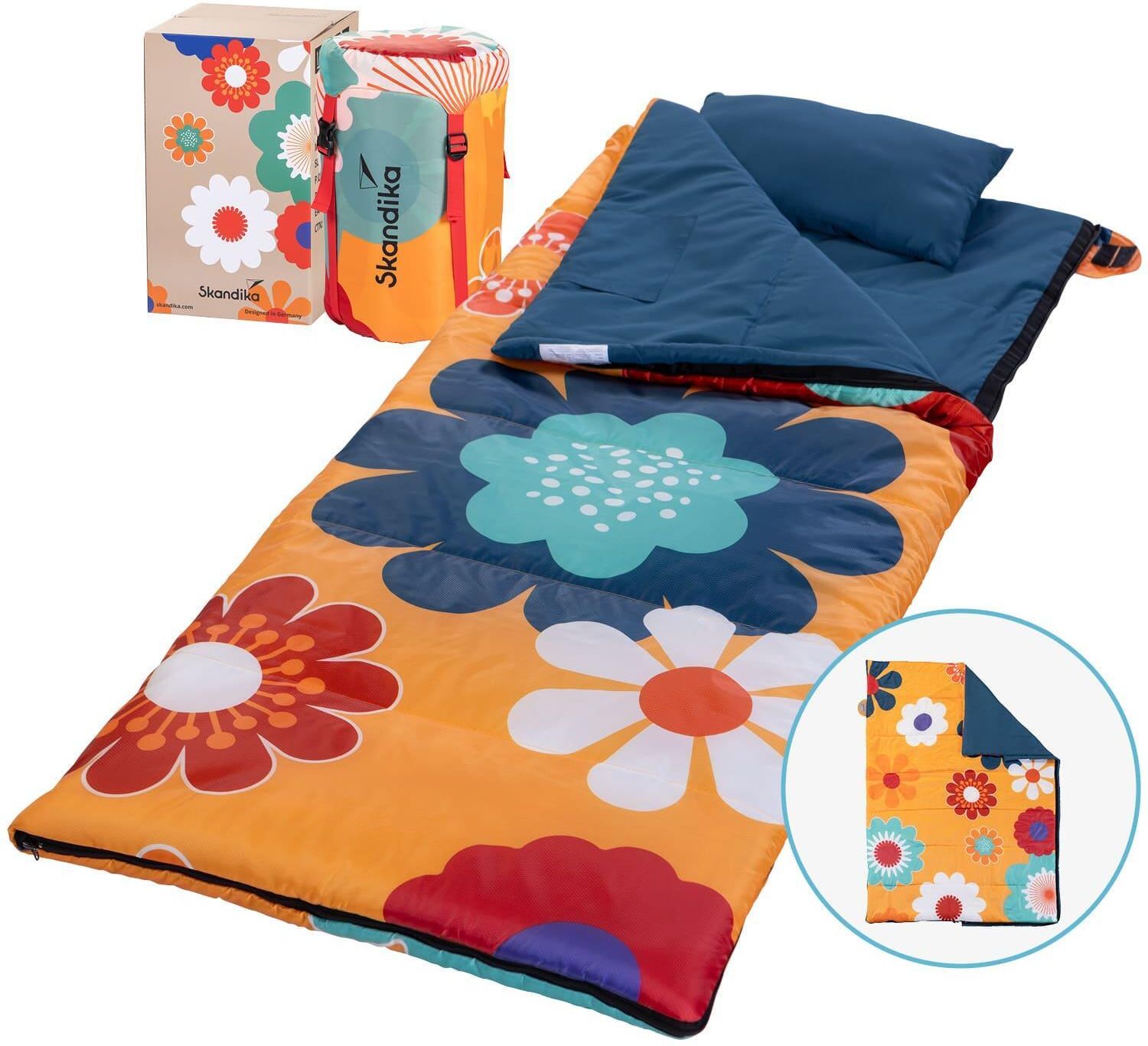 Skandika Śpiwór Kempingowy Turystyczny Sovro 190 Flower 3 Sezony Do -20°C Niebieskie Zielona Góra
