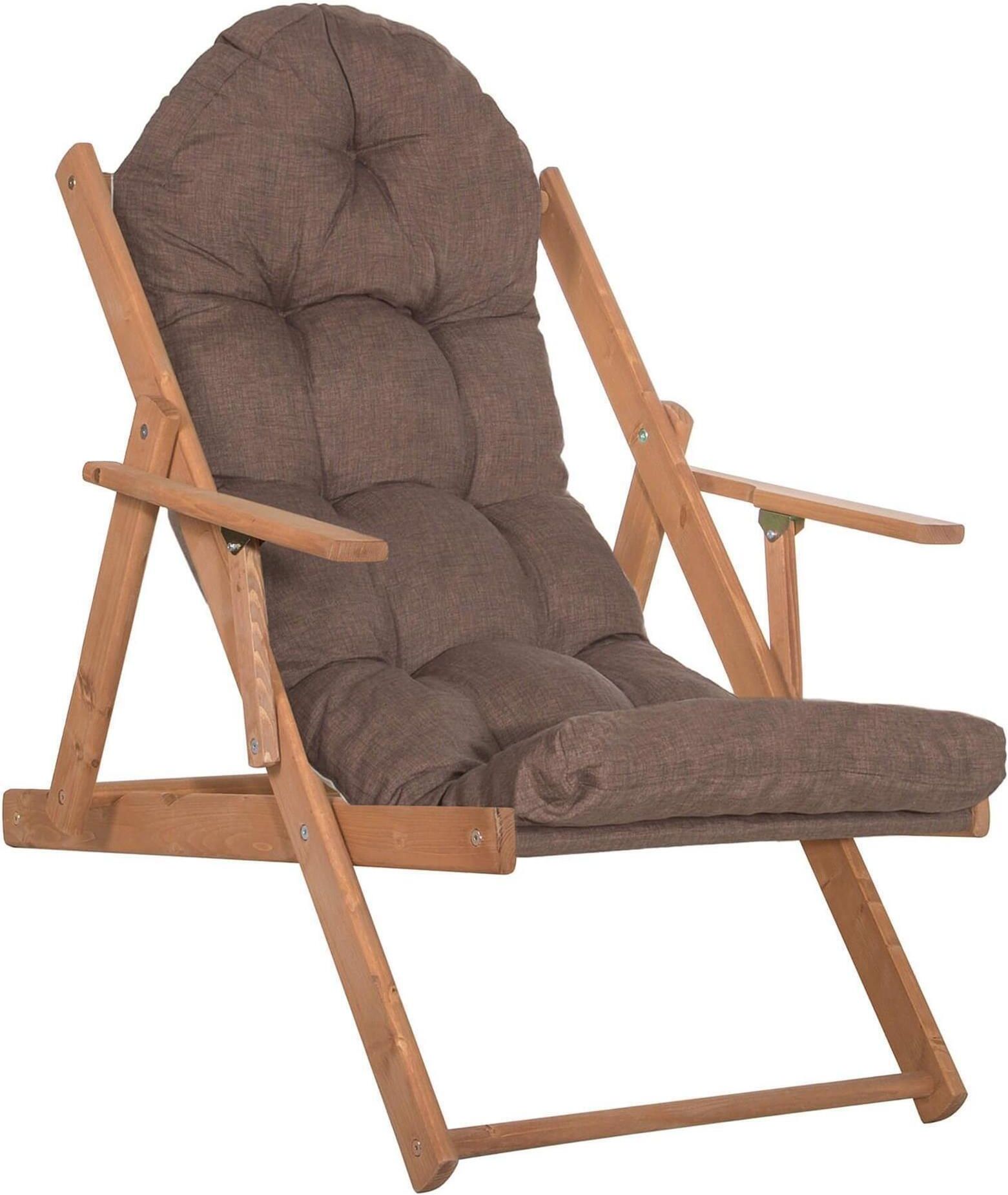 Springos Leżak Drewniany Borneo Fotel Z 3-Stopniową Regulacją I Poduszką Brązowy Zielona Góra