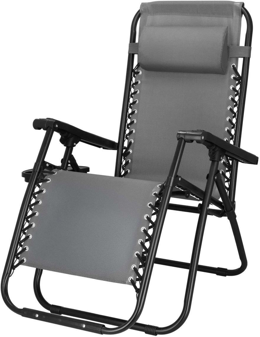 Springos Leżak Ogrodowy Grawitacyjny Z Zagłówkiem I Półką Na Napoje Składany Szary Zielona Góra