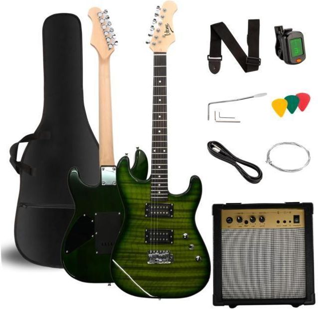 V-Tone Gitara elektryczna EWG 39 GR 4/4 Zielony Gitara elektryczna V-Tone EWG 39 GR 4/4 w kolorze zielonym to doskonały wybór dla każdego miłośnika muzyki. Ten instrument łączy w sobie wysoką jakość wykonania oraz atrakcyjną cenę, co czyni go idealnym rozwiązaniem dla początkujących oraz średniozaawansowanych muzyków. Dzięki swojej wszechstronności, gitara ta sprawdzi się w różnych gatunkach muzycznych, od rocka po jazz. Typ i materiały gitary Model V-Tone EWG 39 to pełnowymiarowa gitara elektryczna typu Stratocaster, co czyni ją niezwykle popularnym wyborem wśród gitarzystów. Korpus wykonany z drewna jaworowego zapewnia doskonały dźwięk oraz trwałość instrumentu, podczas gdy gryf z twardego drewna klonowego gwarantuje wygodę użytkowania. Użycie wysokiej jakości materiałów sprawia, że instrument zachwyca zarówno wyglądem, jak i brzmieniem. Specyfikacje techniczne V-Tone EWG 39 GR wyróżnia się przemyślaną konstrukcją, co czyni ją idealnym rozwiązaniem dla muzyków o różnych potrzebach. Oto kluczowe parametry techniczne: Typ gitary: elektryczna typu Stratocaster, Liczba strun: 6, Mostek: tremolo, Przetworniki: układ HH (Humbucker, Humbucker), Regulacja: potencjometr głośności i barwy, 3-pozycyjny przełącznik dźwigniowy, Złącza: wyjście jack 6,35 mm. Dzięki dwóm humbuckerom, gitara oferuje mocne, czyste i dynamiczne brzmienie, które świetnie odnajduje się w rockowej i metalowej stylistyce. Mostek typu tremolo otwiera przed muzykiem możliwość ekspresyjnej gry, umożliwiając wykonywanie efektownych solówek. Funkcje i zalety gitary Instrument V-Tone EWG 39 GR ma wiele cech, które czynią go wyjątkowym: Wszechstronność: idealna zarówno dla początkujących, jak i średniozaawansowanych muzyków, oferując różnorodne możliwości brzmieniowe, Wygoda gry: ergonomiczny design z cutaway ułatwia dostęp do wyższych progów, co jest niezbędne dla bardziej zaawansowanych technik gry, Mocne brzmienie: przetworniki humbucker gwarantują dynamiczne i pełne brzmienie, co sprawia, że instrument świetnie odnajduje się w różnych gatunkach muzycznych, Estetyka: zielony kolor z lakierowanym wykończeniem w połysku nadaje mu nowoczesny charakter, który z pewnością przyciągnie uwagę. Wymiary i waga Gitara ma pełnowymiarowy rozmiar 4/4 oraz długość menzury wynoszącą 648 mm, co sprawia, że jest komfortowa w grze zarówno dla dzieci, jak i dorosłych. Przy wadze wynoszącej zaledwie 2,4 kg, jest to instrument, który można łatwo transportować i używać w różnych warunkach, co czyni go idealnym do ćwiczeń w domu czy na warsztatach muzycznych. Dodatkowe funkcje i akcesoria Model V-Tone EWG 39 GR dostępny jest w zestawie, który zawiera niezbędne akcesoria, co jest istotne dla każdego, kto rozpoczyna swoją muzyczną przygodę. W skład zestawu wchodzi: Pokrowiec: ułatwia transport instrumentu, co jest niezwykle przydatne dla mobilnych muzyków, Tuner: pozwala utrzymać gitarę zawsze w doskonałym stroju, co jest kluczowe w trakcie nauki i występów, Zapasowe struny: dzięki nim można szybko wymienić uszkodzoną strunę, co jest niezbędne podczas intensywnego grania, Pasek i kostki: zwiększają wygodę i ułatwiają grę w różnych warunkach. Zestaw akcesoriów pozwala na natychmiastowe rozpoczęcie nauki i grania, co czyni go idealnym wyborem dla wszystkich, którzy chcą rozwijać swoje umiejętności muzyczne.