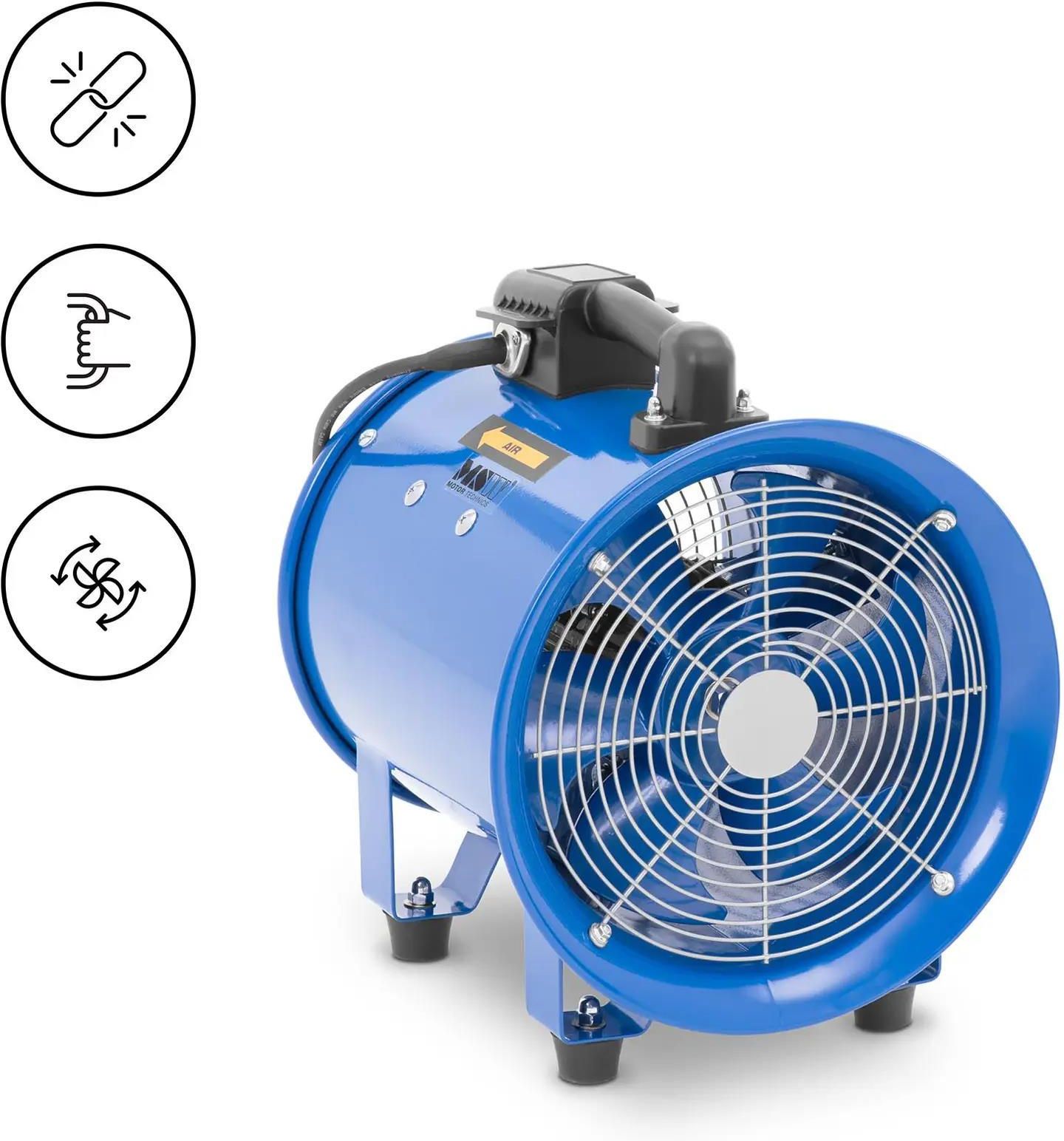 Wentylator przemysłowy - 2700 m³/h - Ø280 mm marki MSW Model: MSW-CTFB-25A Nr katalogowy: 10062608 Najważniejsze cechy produktu Wydajność – przy średnicy 280 mm, wentylator przemysłowy osiąga maksymalny przepływ powietrza 2700 m³/h Duża siła – o mocy 180 W i prędkości obrotowej 2800 obr./min, wentylator budowlany jest wyjątkowo energooszczędny przy zużyciu jedynie 0,3 kW Trwałość – dmuchawa przemysłowa imponuje solidną stalową konstrukcją i precyzyjnym wykonaniem Mobilność – duży uchwyt do przenoszenia wiatraka przemysłowego ułatwia transport na miejsce użytkowania Stabilność – cztery gumowe nóżki zapewniają stabilność konstrukcji wentylatora i chronią powierzchnię przed zarysowaniami Specyfikacja techniczna Materiał - Guma, Aluminium, PP, Stal, Miedź Kolor - Niebieski Napięcie [V] - 230 Stopień ochrony IP - IP54 Prąd [A] - 16 Przepływ powietrza [m³/h] - 2700 Moc [W] - 180 Klasa izolacji - F Ciśnienie powietrza - 295 Pa Długość - 0.35 m Średnica wylotu - 280 mm Poziom hałasu - 73 dB Wysokość paczki [cm] - 38.5 Długość paczki [cm] - 38.5 Szerokość paczki [cm] - 34 Waga paczki [kg] - 11.85 Wysokość produktu [cm] - 38 Długość produktu [cm] - 35 Szerokość produktu [cm] - 33 Waga produktu [kg] - 10.6 Liczba paczek - 1 Mobilny wentylator przemysłowy o bezkonkurencyjnych parametrach Wentylator przemysłowy MSW-CTFB-25A marki MSW zapewnia szybką wentylację, doskonałą dystrybucję powietrza i efektywne chłodzenie lub rozprowadzanie ciepła. Dmuchawa budowlana o szerokim zastosowaniu idealnie nadaje się do stosowania na budowach, w warsztatach, a nawet w namiotach imprezowych i wszędzie tam, gdzie wymagana jest duża wydajność. Maszyny budowlane dla profesjonalistów: wszechstronny wentylator budowlany dla Ciebie Efektywny wentylator przemysłowy pracuje z mocą 180 W i prędkością 2800 obr./min. Przy tych wartościach i średnicy 280 mm przepływ powietrza wynosi 2700 m³/h. Cztery gumowe nóżki zapewniają bezpieczną stabilność podczas pracy i chronią podłoże przed zarysowaniami. Dla Twojego bezpieczeństwa otwór dmuchawy przemysłowej został wyposażony w kratkę. Dzięki stopniowi ochrony IP54 wentylator budowlany zastosujesz również w wilgotnym środowisku. Uchwyt do przenoszenia ułatwia transport i ustawianie wiatraka w miejscu użytkowania. Przewód zasilający o długości 1,8 m zapewnia dodatkową elastyczność bez konieczności stosowania przedłużacza. Obudowa wentylatora przemysłowego zrobiona jest z wytrzymałej stalowej konstrukcji. W połączeniu z mocnym tworzywem sztucznym i precyzyjnym wykonaniem jest szczególnie trwała i nadaje się również do stosowania w miejscach, w których panują trudne warunki. Wentylator przemysłowy MSW-CTFB-25A Zdjęcia produktu