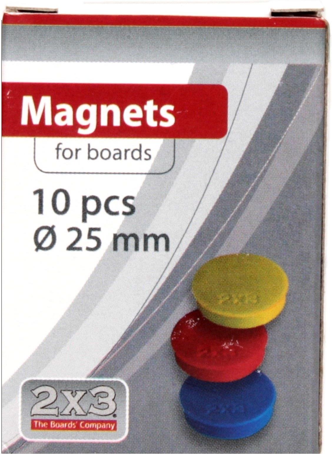 Magnesy 25 mm 10 sztuk mix kolorów Idealne do stosowania z tablicami magnetycznymi suchościeralnymi Magnesy okrągłe o wymiarze 25 mm Mogą być wykorzystane do przyczepiania kartek do tablicy Zestaw zawiera magnesy w kolorach: 2x żółte, 2x niebieskie, 4x czerwone, 2x zielone Kim jesteśmy? Firma 2×3 …