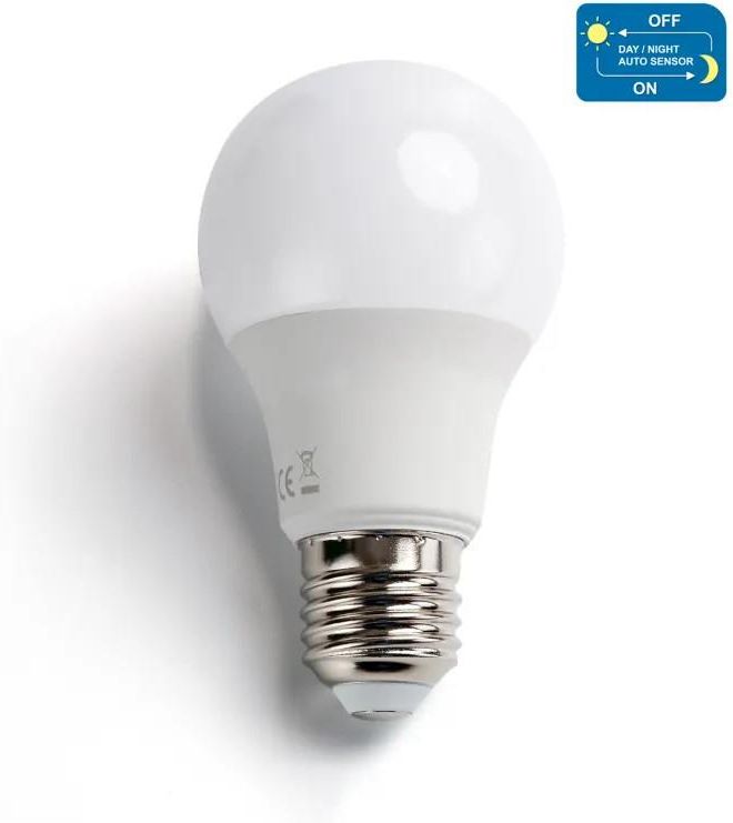 ŻARÓWKA LED Z CZUJNIKIEM ZMIERZCHU E27 8W Duży kąt;Gdy oświetlenie otoczenia <10Lux±5Lux luksów światło włącza się; gdy oświetlenie otoczenia >30Lux±5Lux luksów, światło gaśnie. Czas oceny natężenia oświetlenia wynosi 6s±2s sekund. Szerokie zastosowanie Spełnia wiele potrzeb, doskonale nadaje się do drzwi wejściowych, garażu, balkonu, korytarza i innych miejsc wymagających inteligentnego światła. Dane techniczne Trzonek (gwint): E27 Barwa światła: ciepła biel 3000K Rodzaj diod: 2835 SMD II generacji Pobór mocy: 8W rumień świetlny:730lm Napięcie zasilania: 230V Kąt świecenia: 190 stopni Żywotność: 25 000 h Współczynnik oddawania barw CRI: Ra > 80 Materiał obudowy: Aluminium&Plastik Zakres temperatur: -20°C do+50°C Wysokość: 112 mm Średnica: 60 mm