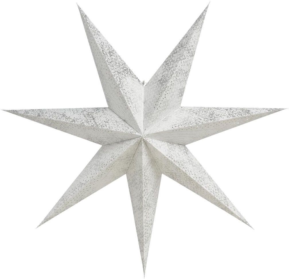 Duża siedmioramienna gwiazda bożonarodzeniowa idealna do największego okna! Ta srebrna gwiazda stwarza wyjątkowy nastrój i jest wykonana z papieru o metalicznym połysku. Jest wyposażona w oprawkę E14, osłonę żarówek i przewód z przełącznikiem. Żarówka maksymalnie 25 W (do kupienia osobno).