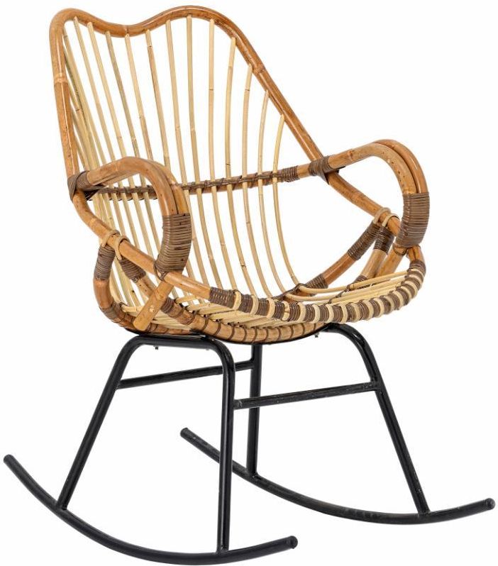 Fotel bujany Reine Fotel bujany Reine marki Bloomingville wykonany jest z naturalnego rattanu, utkanego w otwarty wzór, który nie tylko tworzy przewiewny i lekki wyraz, ale także zapewnia wygodne podparcie. Krzesło opiera się na solidnej ramie z czarnego metalu, dodając ostrego kontrastu do ciepłego drewna. To krzesło oferuje świeże spojrzenie na klasyczny wystrój lub przytulny kącik w nowoczesnym domu, dzięki zachęcającemu i stylowemu wyglądowi. Rama jest malowana proszkowo, natomiast krzesło lakierowane jest lakierem na bazie wody. Dodatkowe informacje Marka: BLOOMINGVILLE Kolekcja: Reine Kompozycja: Skromne pamiątki Kolor: Naturalny Główny materiał: Rattan Kompozycja: Rattan, Żelazo Wymiary: długość 78 cm x wysokość 86 cm x szerokość 53 cm Inne specyfikacje: Mogą wystąpić różnice w kolorze ze względu na materiały Wykończenie produktu: Lakier na bazie wody i malowanie proszkowe