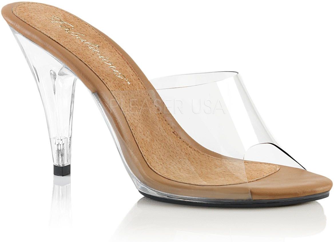 Klapki Fabulicious - stylowe Caress-401 Doskonała jakość, wyjątkowy styl, wygoda każdego kroku - to właśnie gustowne i wyjątkowe w swej prostocie klapki na obcasie Fabulicious Caress-401. Wszystkie panie, które w butach cenią sobie zarówno ich estetykę, jak i jakość, ale także komfort użytkowania, powinny mieć je w swojej szafie! Poznaj klapki na obcasie Caress-401 Dlaczego klapki Caress-401 to absolutny must-have dla każdej miłośniczki obuwia? Model ten doskonale sprawdzi się w połączeniu ze spodniami - zarówno długimi, jak i szortami - a także z sukienką czy spódnicą. Bez względu na to, z jaką garderobą połączysz buty Caress-401, możesz mieć absolutną pewność, że podkreślą one jej styl i charakter, a same w sobie będą prezentować się zniewalająco. Klapki na obcasie o wysokości niecałych 8 centymetrów, wykonane z transparentnych materiałów, to model wybitny w swej prostocie. Klasyczny, niski obcas, prosta cholewka i doskonale wyprofilowana podeszwa w kolorze karmelowego brązu to trzy proste elementy, które składają się na ten wyjątkowy model.