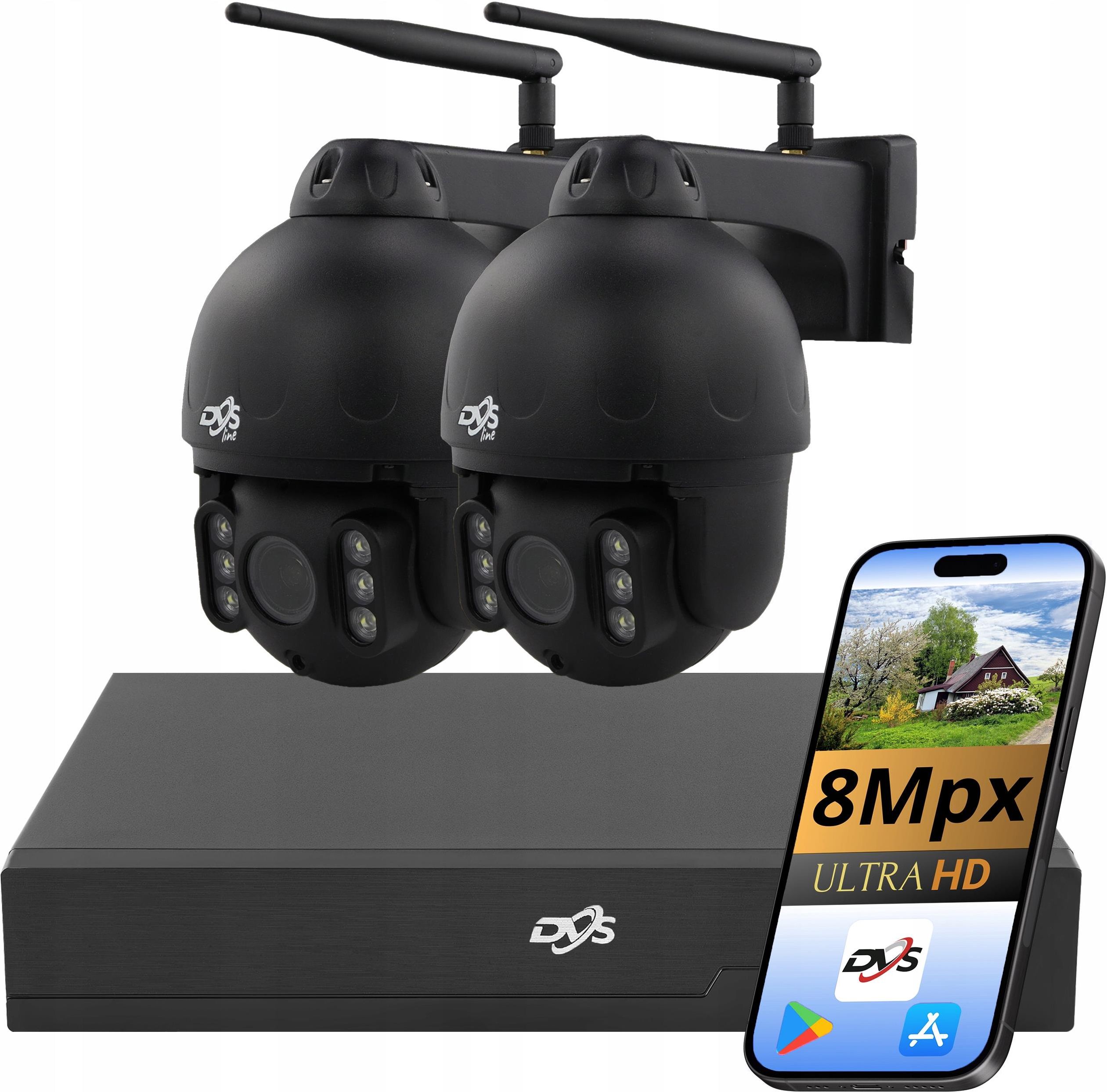 Dvs Monitoring Wifi 2 Kamery Obrotowe 8Mpx 4K Metalowe Czarne Rejestrator P2P (DVSNVR0801E8+2XDVSSDIP8040EIRWS) Zielonka