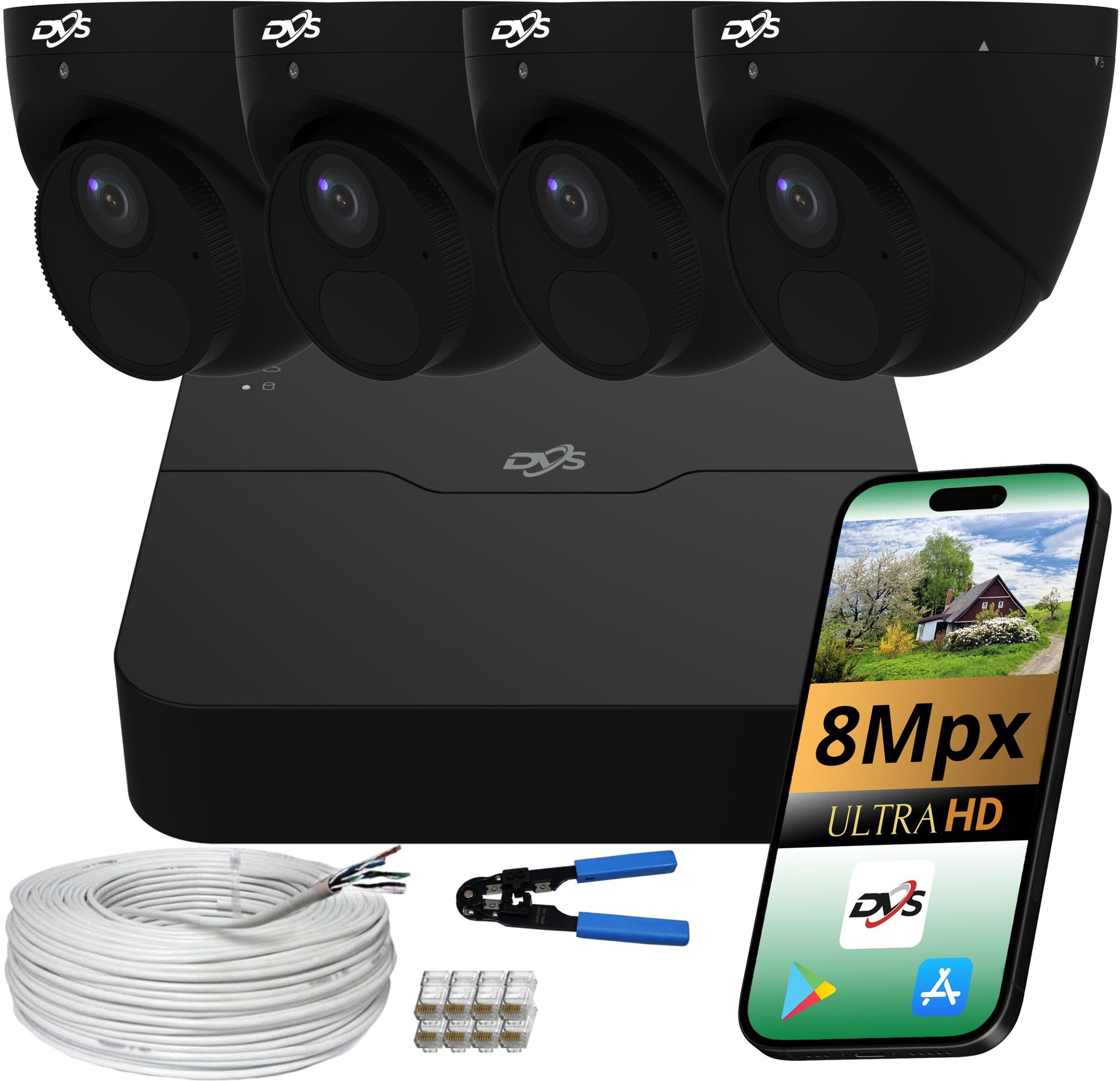 Dvs Zestaw 4 Kamer Czarnych Kopułowych 4K 8Mpx Ip Poe Z Mikrofonem Smart Zielonka